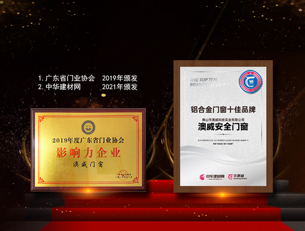 ① 中國商品質(zhì)量名優(yōu)品牌推廣中心 2010年頒發(fā)《商品與質(zhì)量》消費市場調(diào)查中心 2010年頒發(fā) ② 廣東省門業(yè)協(xié)會 2017年頒發(fā)